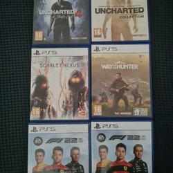 Playstation Spil Samling: Uncharted, Scarlet Nexus, Way of the Hunter, F1 22