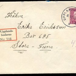 UPPLANDS-BODARNA 6/12 1937. Mooie voorkant maar slordig geopende brief!