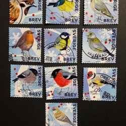 Frimärken Sverige VINTERFÅGLAR uit 2018 de hele serie 10 postzegels