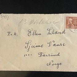 F 321 censuurbrief naar Noorwegen gestempeld met SUNDSBY 1940