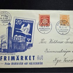 Brief gestempeld tentoonstelling Frimärket 19/2 1943
