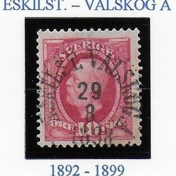 F 54, 10 öre, Oscar, Järnvägspost 1. Eskilst. - Valskog A