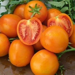 TOMAAT - Struiktomaat - Dean's Haley's Rainbow - oranjegeel - groenachtig wit blad