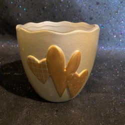 Buitenpot - Pot .Beige met harten in goud. Hoogte 11 cm, 12 cm in d. Fr æld lantha