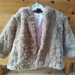 Lichtbruine "pelsjack" met roze voering, maat 80