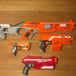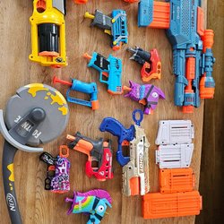Köp NERF-guns second hand på Tradera! NERF står för ”non-expanding recreational foam” och är alltså leksaksvapen som skjuter ut pilar och bollar av mjukt gummi. NERF-guns har kommit att bli otroligt populära bland barn och finns i mängder av olika utföranden. Spana in annonserna på Tradera och lägg ett bud idag!