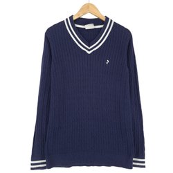 J.Lindeberg Heren Pullover Trui Blauw Katoen Klassiek Gebreid maat M