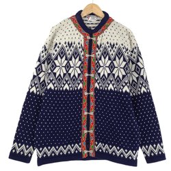 Cardigan Vintage Blå Nordic Scandinavian Fair Isle Varm Gebreide Heren maat M