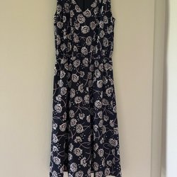 Closet London donkerblauwe en veelkleurige bloemenprint jurk, maat UK 8, US 4