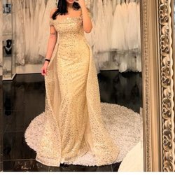 VINTAGE Galajurk/Avondjurk voor Dames Bruin S Lange mouw Hartvormige halslijn