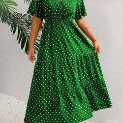 Lichtgroene jurk met witte stippen