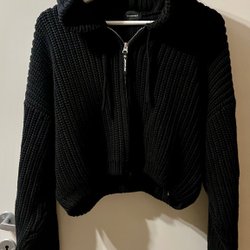 Het is een normale zwarte trui, maat S/M