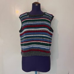 Vintage Hemgebreide Slipover Meerkleurige Retro Trui Vest Wollen garen Maat 36-38*