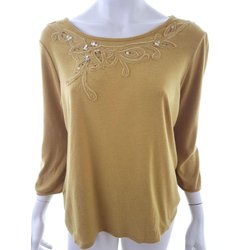 PRINCIPLES Blouse voor Dames Pailletten Beige 44 3/4 mouw Katoen Boot-hals