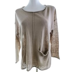 GUDRUN SJÖDÉN Blouse S Beige Linnen 3/4 mouw Ronde hals