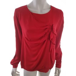 MASSIMO DUTTI Blouse 34 Rood Viscose 100% Lange mouw V-hals
