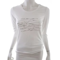 JUST WHITE BY SE Blouse 36 Grijs Katoen 3/4 mouw Pailletten Strepen Ronde hals