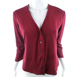 ANN TAYLOR Knoopblouse S Bourgondië Rayon 3/4 mouw V-hals