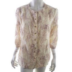 Knäppt blus 46 Beige Katoen 100% 3/4 mouw Plantenblad Ronde hals