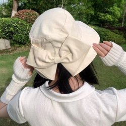 Witte katoenen bucket hat voor dames, Zonnehoed met strik, Zomerhoed, Strandhoed