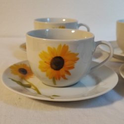 6 kopjes met schotels – zonnebloemmotief, Tina Stilan