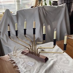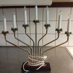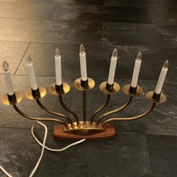 Retro adventskaars, messing & teak, LUMA LS 62B, elektrische kandelaar, jaren 60