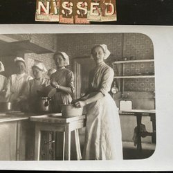 Authentieke fotokaart 3 vrouwen in de keuken