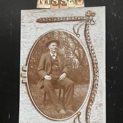Echt fotografie-ansichtkaartportret met prachtige art nouveau-vignet