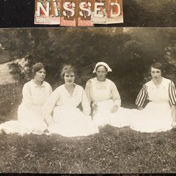 Authentieke fotografie ansichtkaart 4 vrouwen zittend in het gras