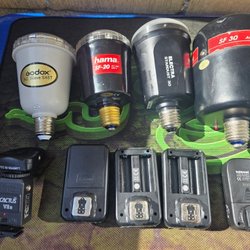 Begagnade kamerablixtar och tillbehör