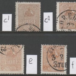 F 16 (4). 20 öre Lejon in 4 exemplaren met verschillende tinten.