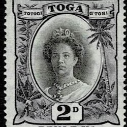 Tonga 1932 Drottning Salote 2 pence. Postfrisse postzegel, goede waarde.