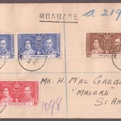 SWAZILAND - 1947 - KONINKLIJK BEZOEK. Volledige set op FDC naar de VS