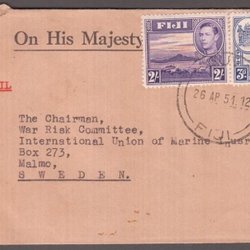 FIJI - 1951 - Georg VI. op enveloppe - verzonden naar de KRIGSRISICO-COMMISSIE in MALMÖ