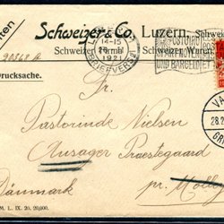Schweis Brief naar Denemarken 1921 Bedrijfsperforatie zegel S.C.