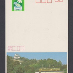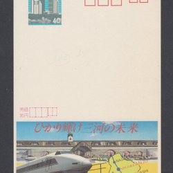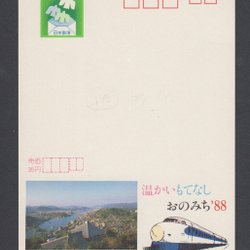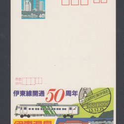 Japan helsak. Japan postal stationery ECHO. Reclame voor treinen en trams. A6-formaat.