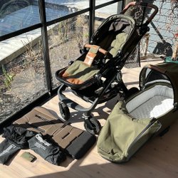 Begagnade barnvagnar från bland annat BRIO, Crescent och Bugaboo