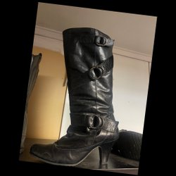 Vintage,Made in Spain Kniehoge Laarzen, Blauw, maat38, binnenzool 25 cm.