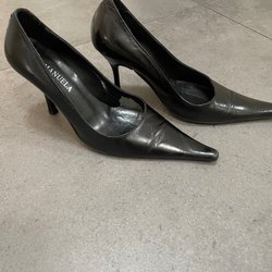Zwarte leren schoenen van het merk A Pair met een hogere zool in maat 37!