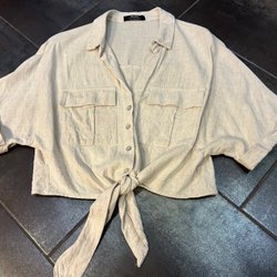 Gina Tricot beige overhemd, maat 40 linnen