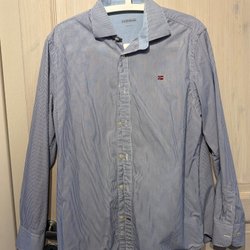 Napapijri blauw en wit gestreept overhemd, maat L
