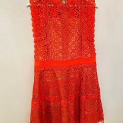 Vintage Rosa jurk met fijne borduursels. Maat 46.