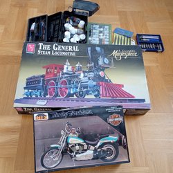 Modelbouwsets: Stoomlocomotief, Motorfiets en Accessoires