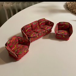 Dockskåpsmöbler -Sammet Soffa en Fåtölj - Dockhus- kerstcadeau