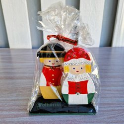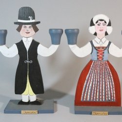 Kandelaar, beschilderd hout, voor elk 2 kaarsen, echtpaar in klederdracht, GURLI ANDERSSON