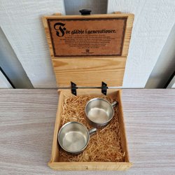 Scandia Tenn Pewter Punch Cups R10 – Paar met houten kist