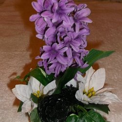 Bloemengroep Lila Hyacint witte kerstster Klimop porselein Vintage jaren 70