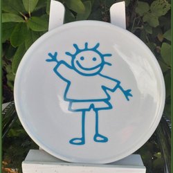 Bodumbord met snoepkom met kindermotief in porselein. Uitstekende staat
