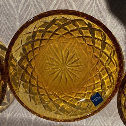 Ouder Luminarc glas, amberkleurig glas op voet borrelglaasje