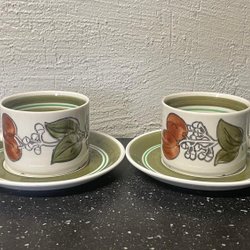 2 theekopjes met schotels Barbro Löfgren-Örtendahl, Gefle, jaren 60